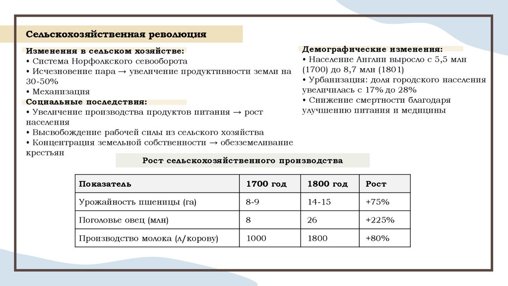 Сельскохозяйственная революцияДемографические изменения:
