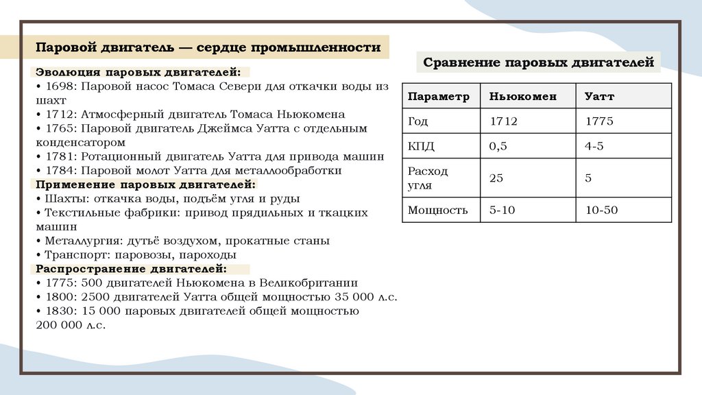 • 1712: Атмосферный двигатель Томаса Ньюкомена