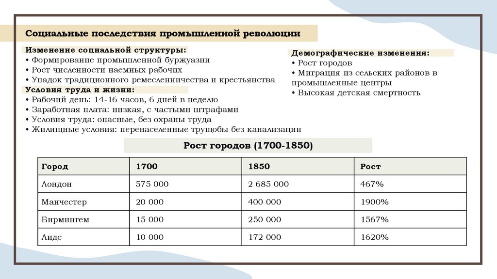 Социальные последствия промышленной революцииИзменение социальной структуры: