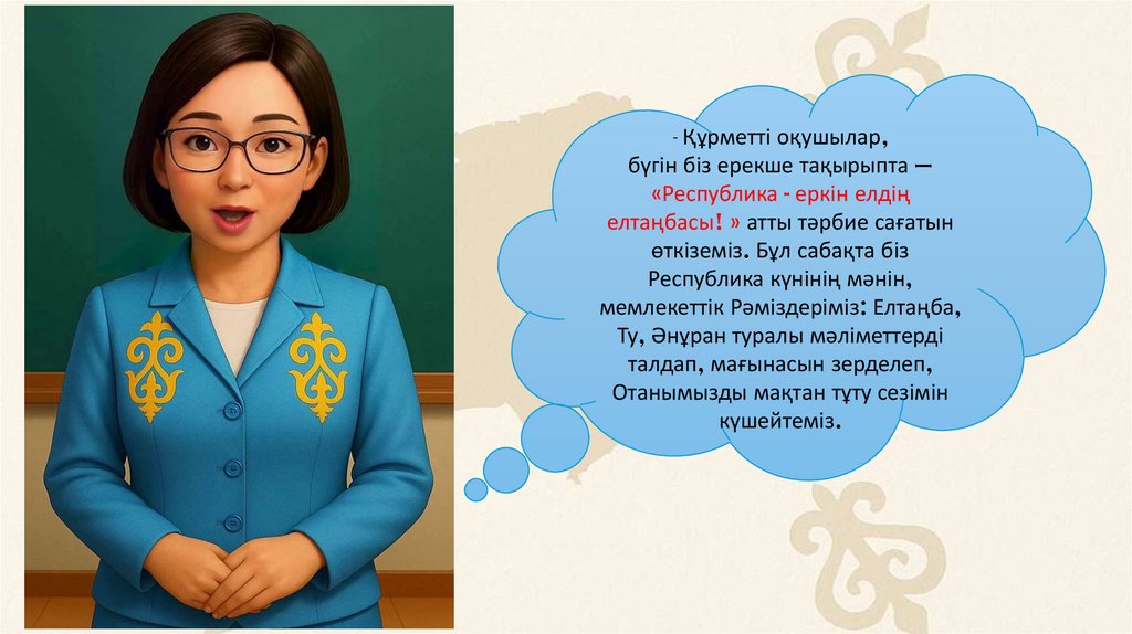 - Құрметті оқушылар,бүгін біз ерекше тақырыпта –