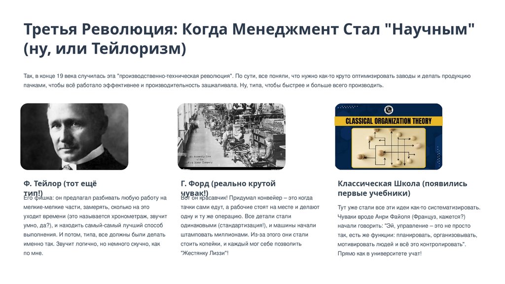 Вопрос: А кто придумал тот самый "научный менеджмент" (это та, третья революция)? Ответ: Знаменитый