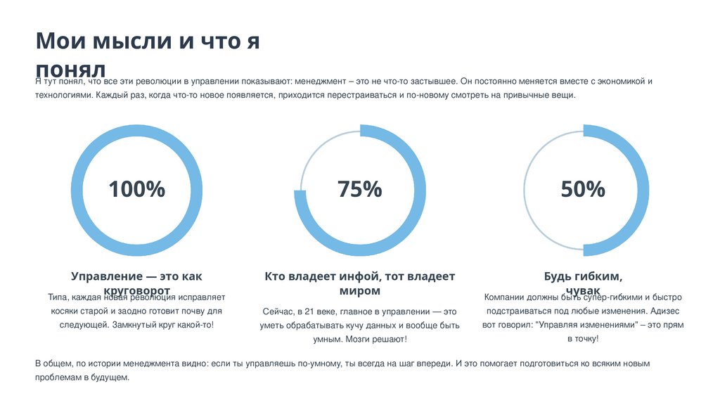В этой презентации я попробую рассказать, как вообще развивалась управленческая мысль. Мы посмотрим на то, что называют «управленческими