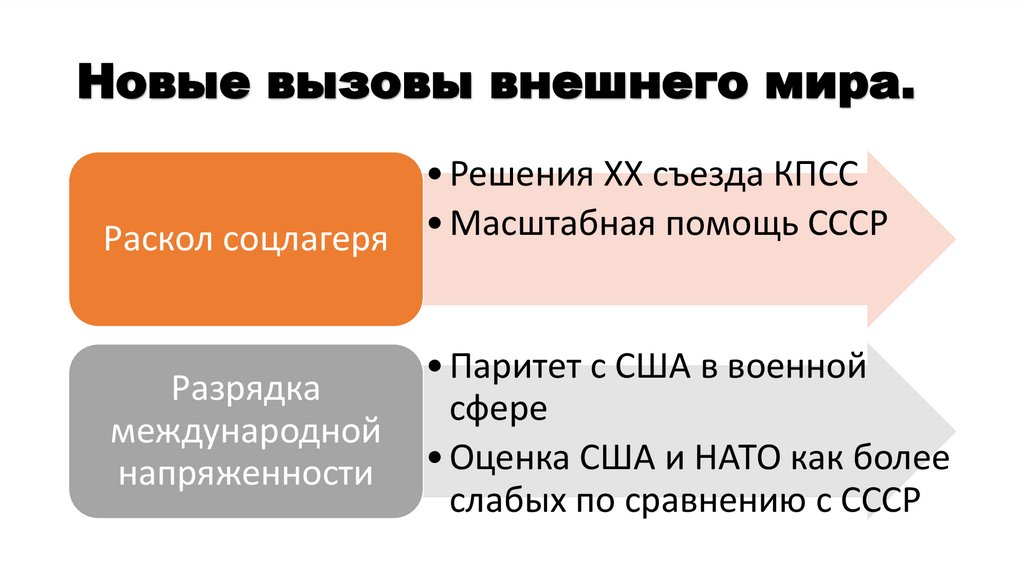 Новые вызовы внешнего мира.• Решения XX съезда КПСС