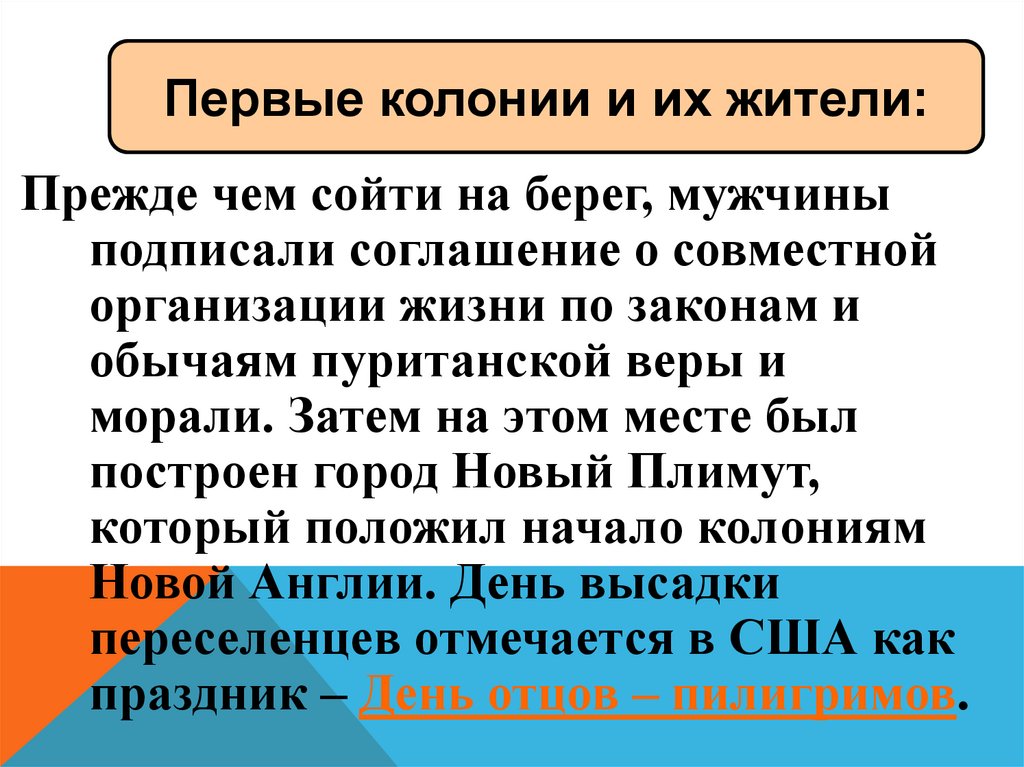 Первые колонии и их жители:Прежде чем сойти на берег, мужчины