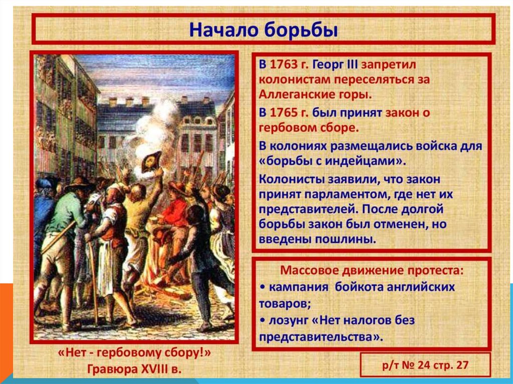 1765 г. – английский парламент принял закон о