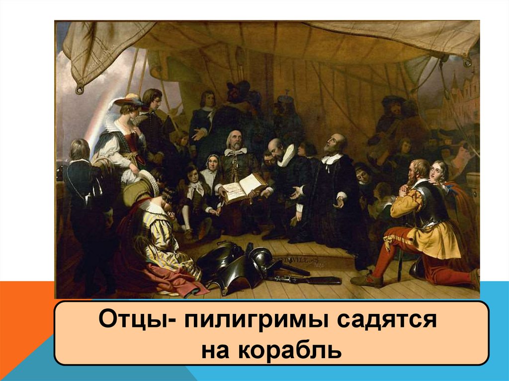 Отцы- пилигримы садятсяна корабль