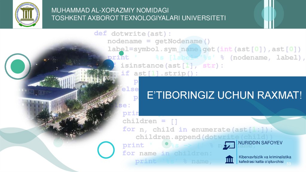 MUHAMMAD AL-XORAZMIY NOMIDAGITOSHKENT AXBOROT TEXNOLOGIYALARI UNIVERSITETI