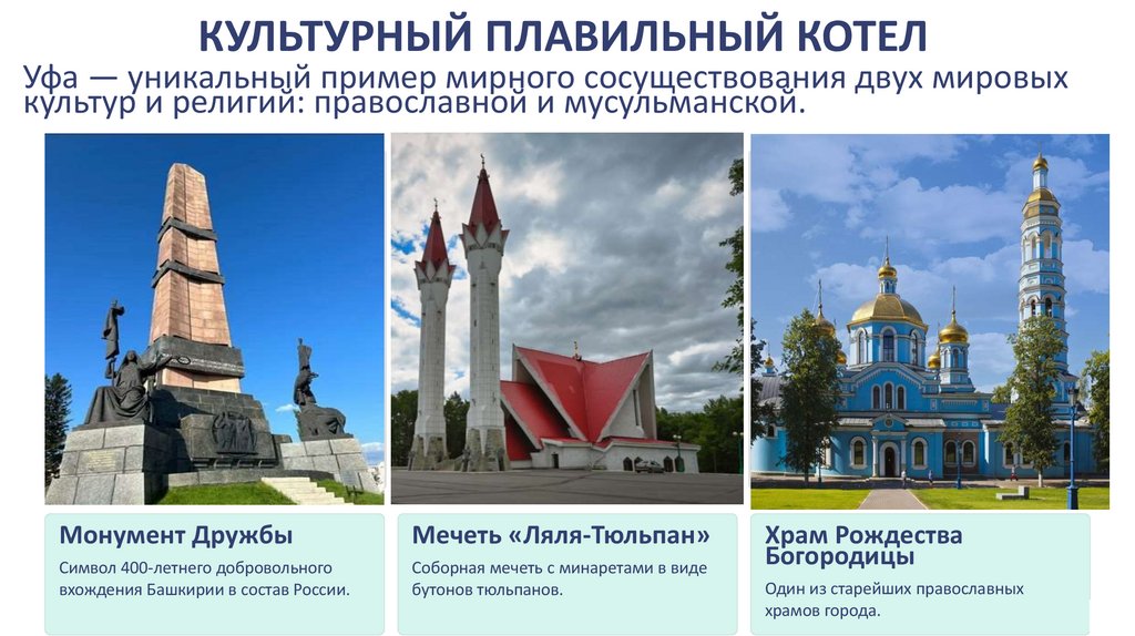 КУЛЬТУРНЫЙ ПЛАВИЛЬНЫЙ КОТЕЛУфа — уникальный пример мирного сосуществования двух мировых