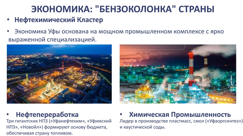 • Экономика Уфы основана на мощном промышленном комплексе с ярко