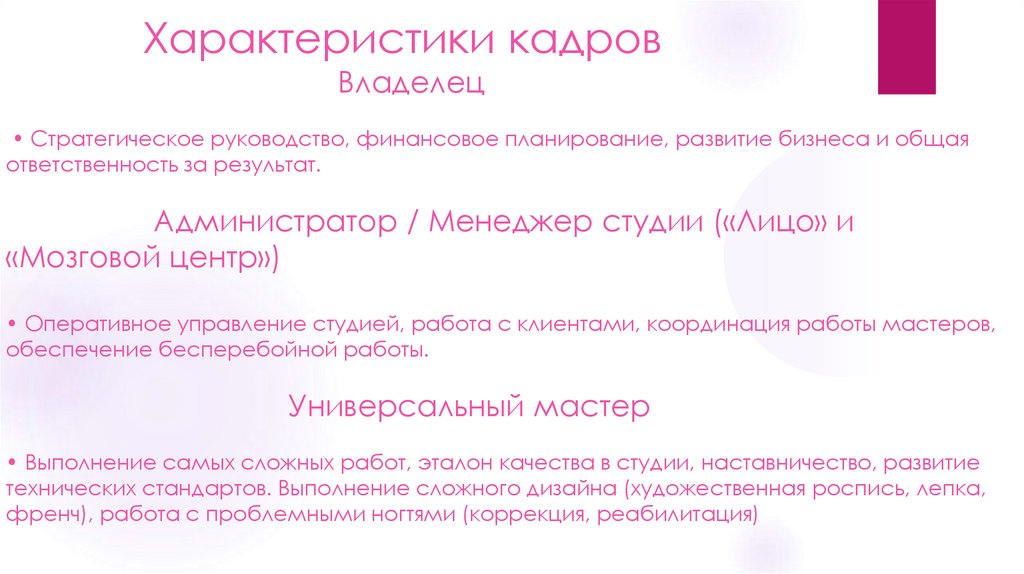 • Оперативное управление студией, работа с клиентами, координация работы мастеров,