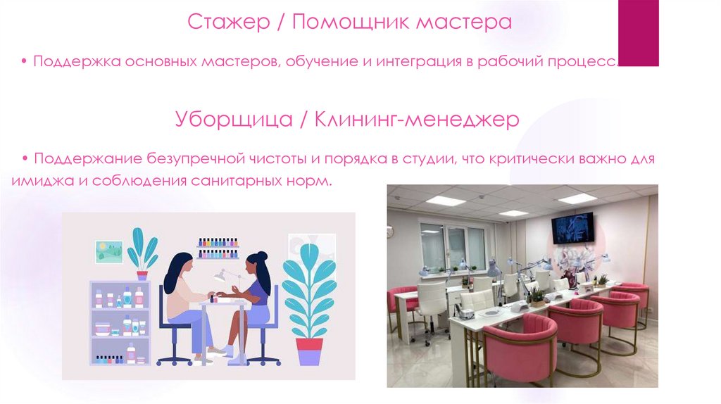 • Поддержание безупречной чистоты и порядка в студии, что критически важно для