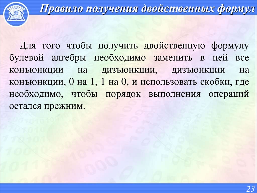 булевой алгебры необходимо заменить в ней все