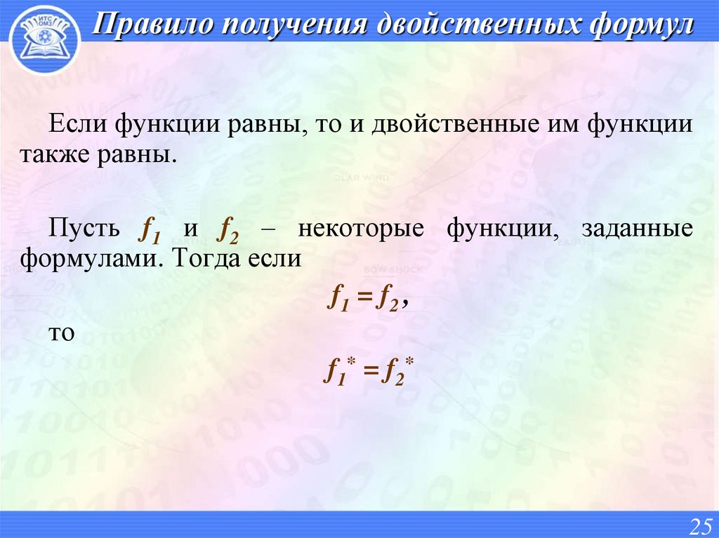 Правило получения двойственных формулЕсли функции равны, то и двойственные им функции