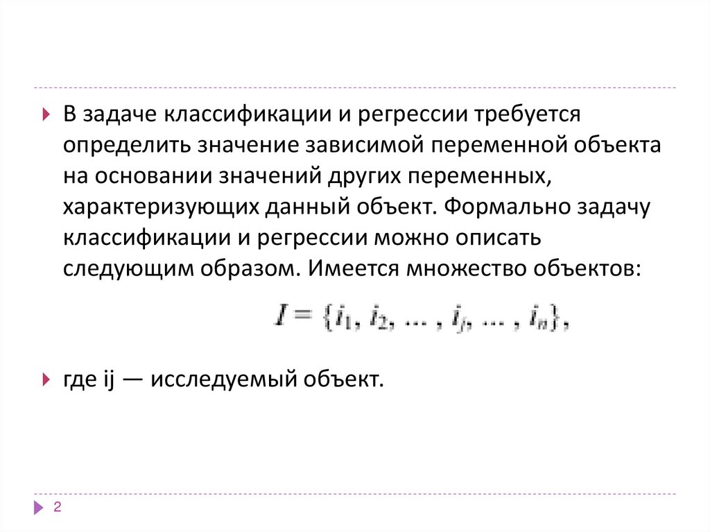 В задаче классификации и регрессии требуетсяопределить значение зависимой переменной объекта