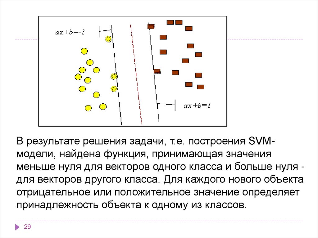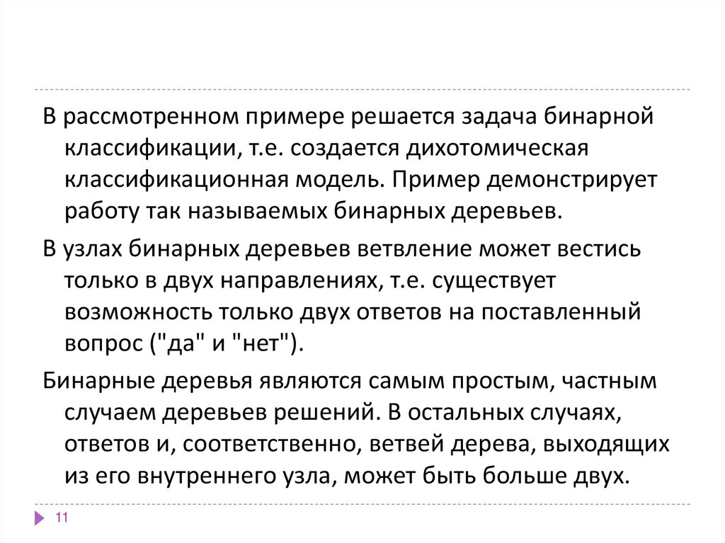 В рассмотренном примере решается задача бинарнойклассификации, т.е. создается дихотомическая