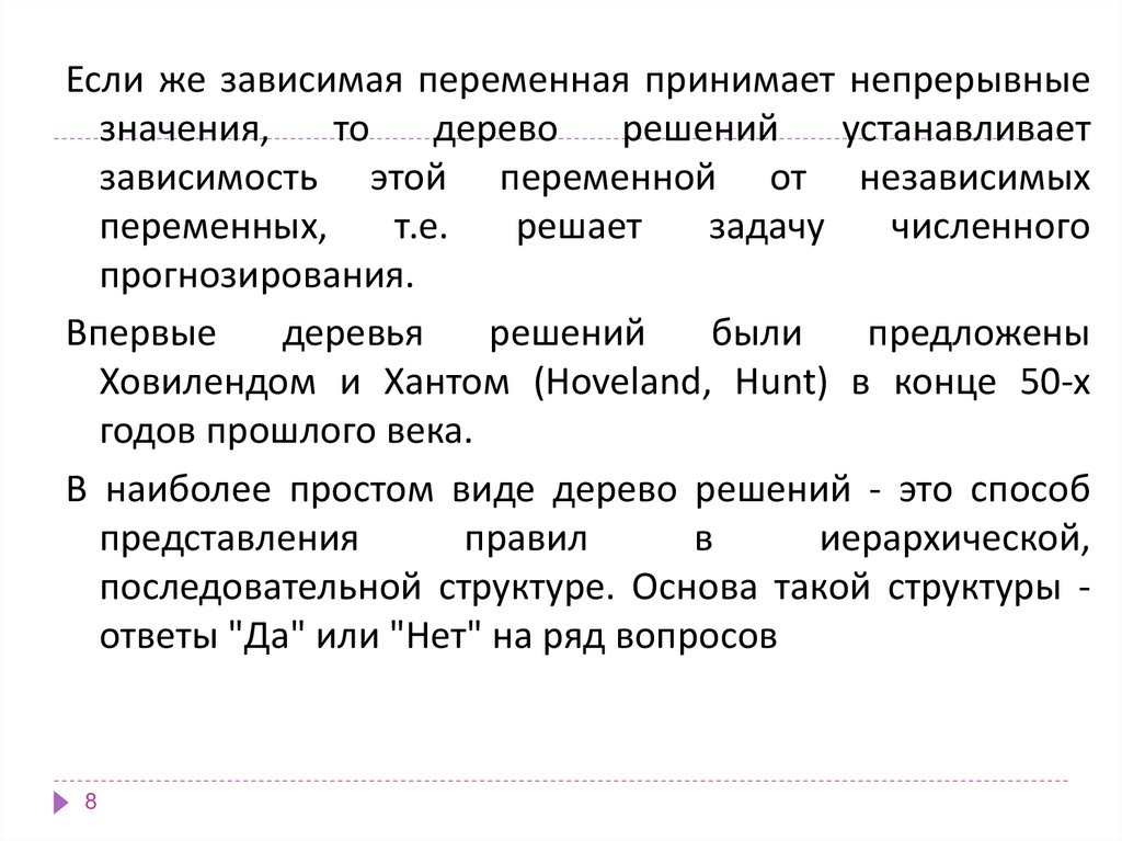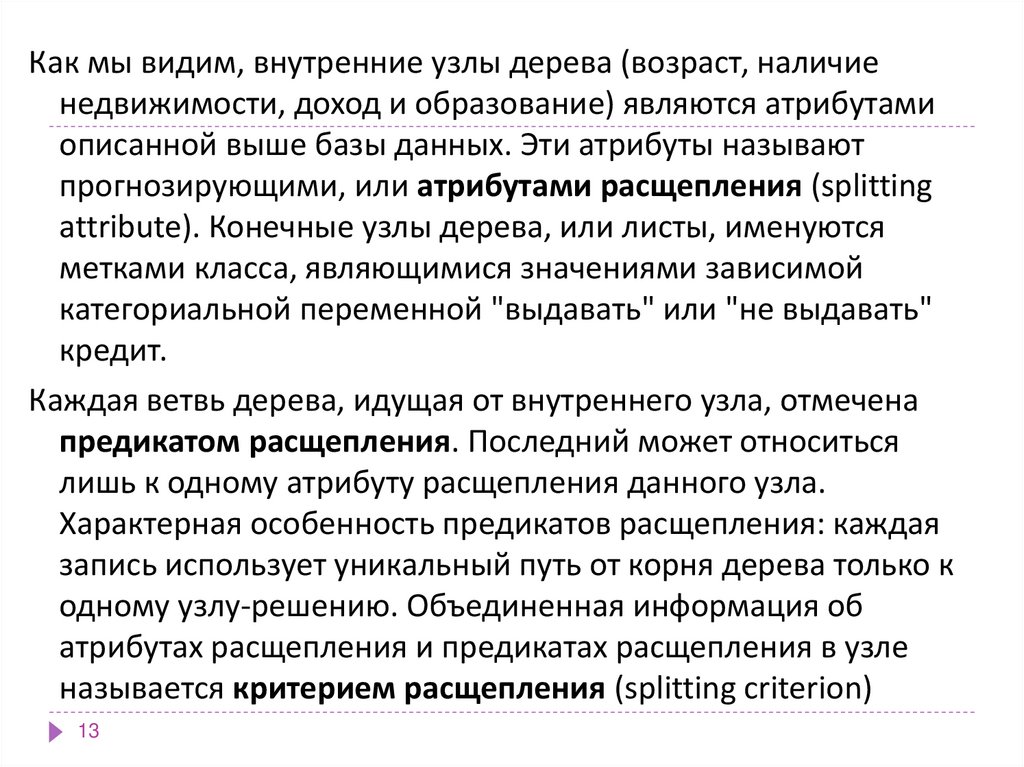 Они создают иерархическую структуруклассифицирующих правил типа "ЕСЛИ... ТО..." (ifthen), имеющую вид дерева.