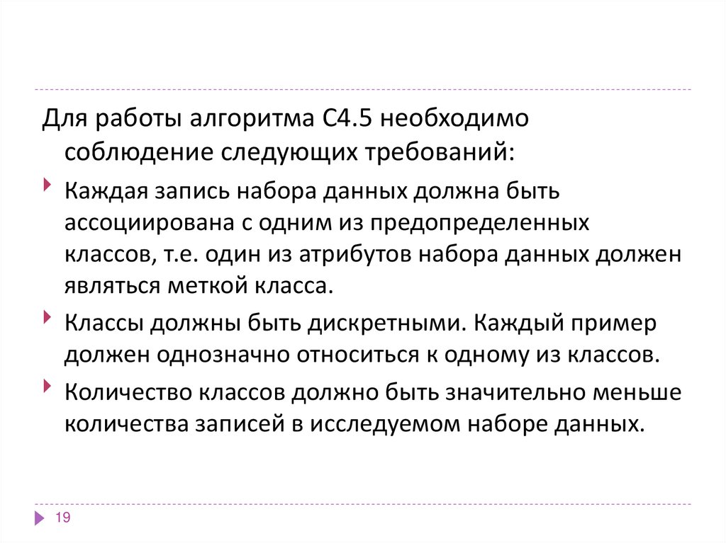 невозможна непосредственная обработка непрерывных переменных требуется их преобразование к интервальной шкале, чтобы атрибуты