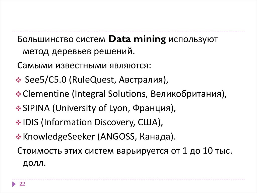 Деревья решения являются одним из наиболеепопулярных подходов к решению задач Data Mining.