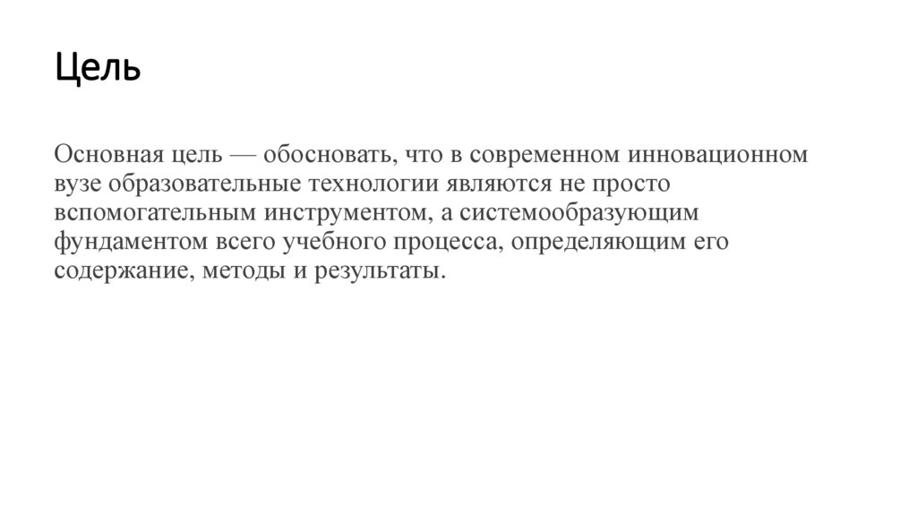 ЦельОсновная цель — обосновать, что в современном инновационном