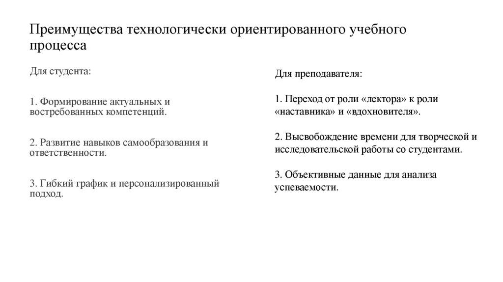 Преимущества технологически ориентированного учебногопроцесса