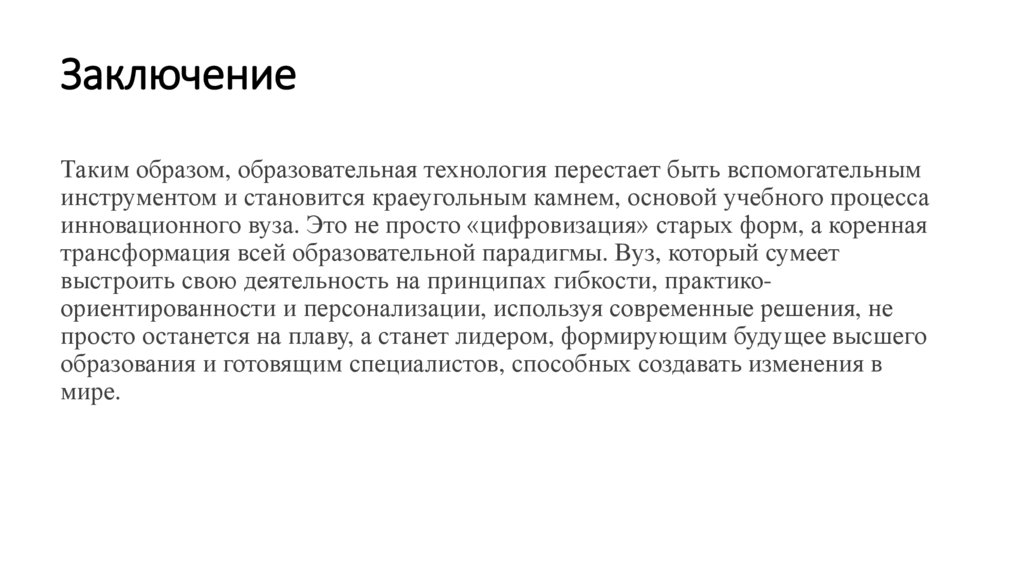 ЗаключениеТаким образом, образовательная технология перестает быть вспомогательным