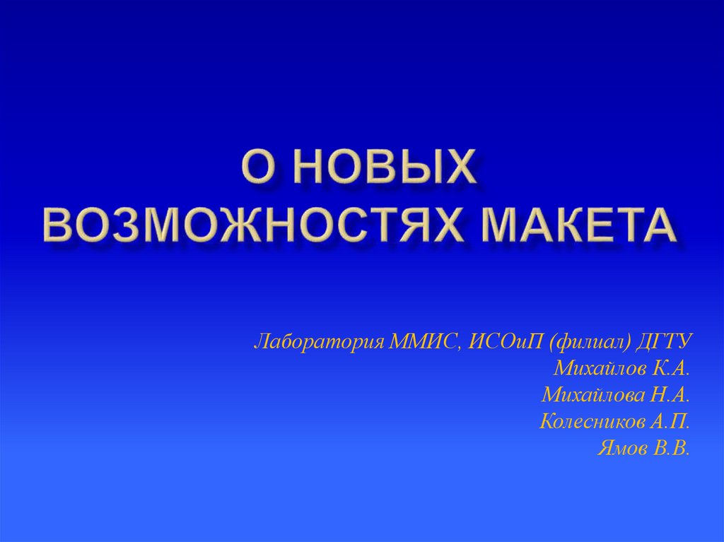 Лаборатория ММИС, ИСОиП (филиал) ДГТУМихайлов К.А.
