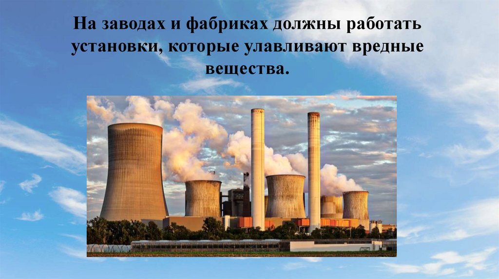На заводах и фабриках должны работатьустановки, которые улавливают вредные