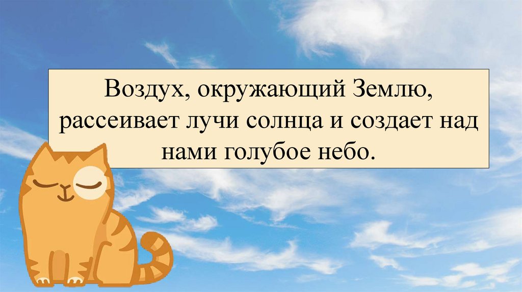 Воздух, окружающий Землю,рассеивает лучи солнца и создает над