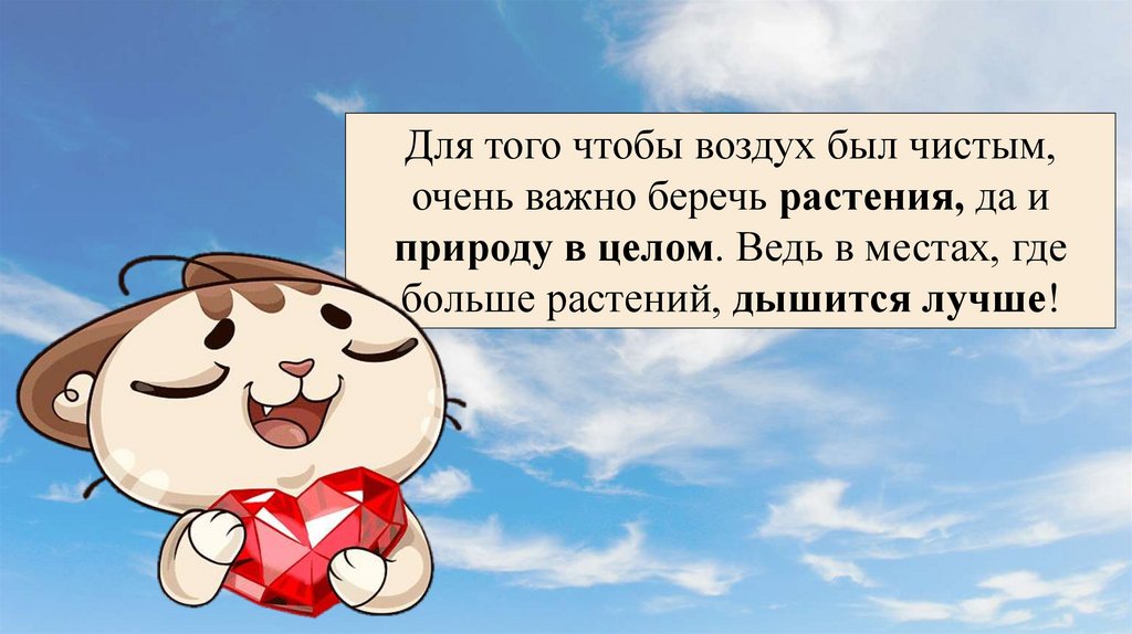 Для того чтобы воздух был чистым,очень важно беречь растения, да и