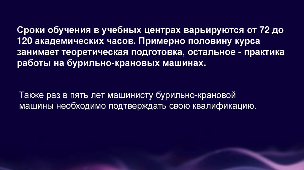 Сроки обучения в учебных центрах варьируются от 72 до120 академических часов. Примерно половину курса