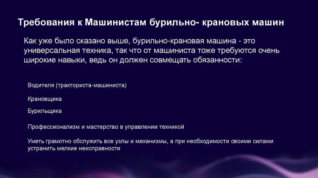 Требования к Машинистам бурильно- крановых машинКак уже было сказано выше, бурильно-крановая машина - это