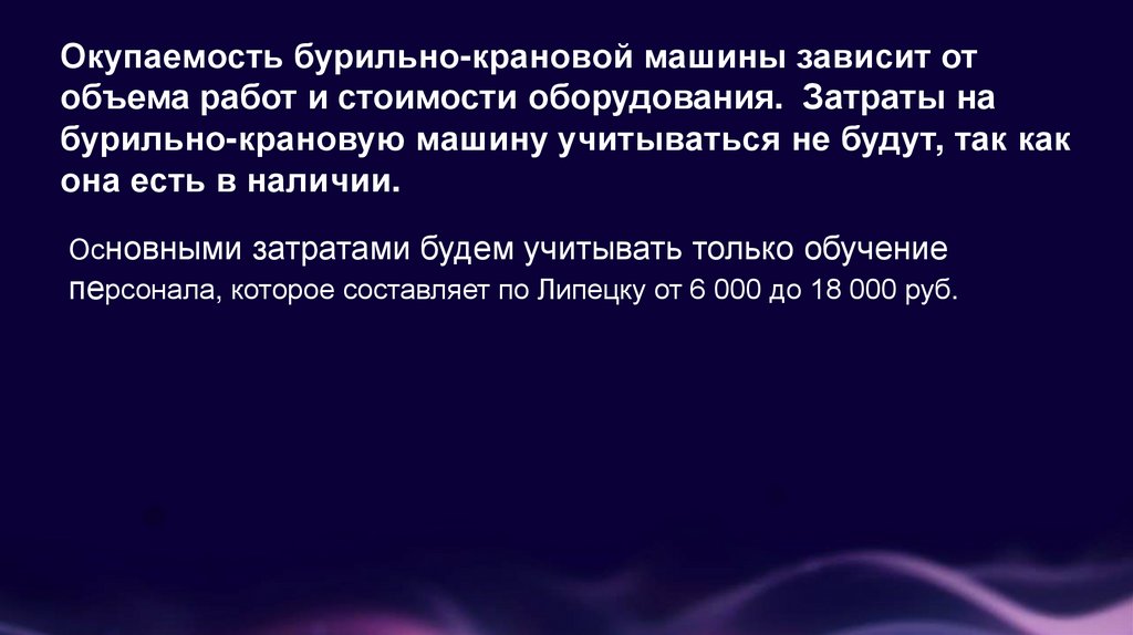 Окупаемость бурильно-крановой машины зависит отобъема работ и стоимости оборудования. Затраты на
