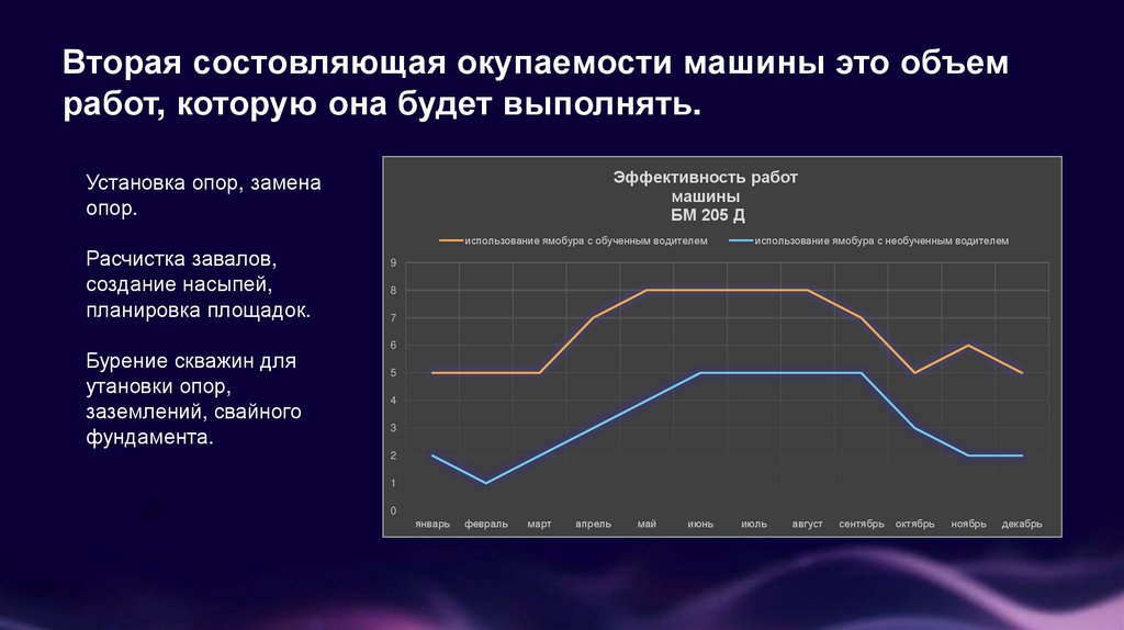 Вторая состовляющая окупаемости машины это объемработ, которую она будет выполнять.