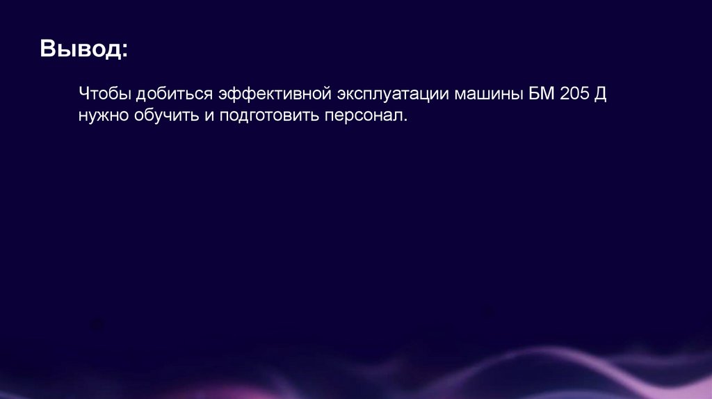 Вывод:Чтобы добиться эффективной эксплуатации машины БМ 205 Д