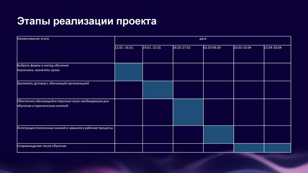 Этапы реализации проектаНаименование этапа