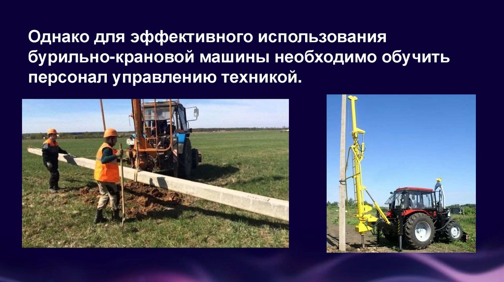 Однако для эффективного использованиябурильно-крановой машины необходимо обучить