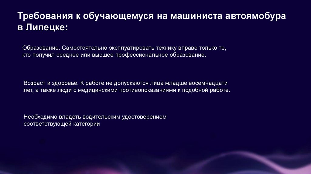 Требования к обучающемуся на машиниста автоямобурав Липецке: