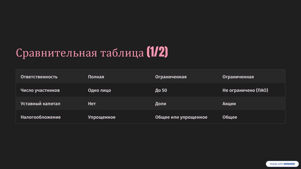 Сравнительная таблица (1/2)Ответственность