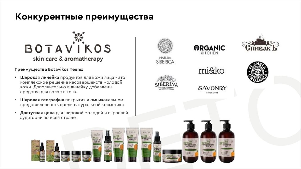 Конкурентные преимуществаПреимущества Botavikos Teens: