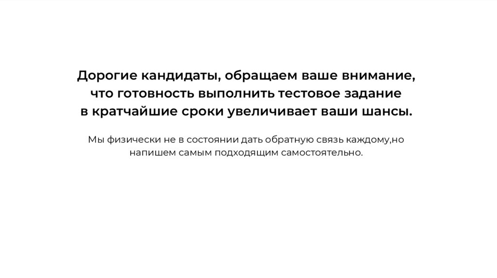 Дорогие кандидаты, обращаем ваше внимание,что готовность выполнить тестовое задание