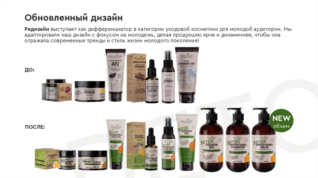 Обновленный дизайнРедизайн выступает как дифференциатор в категории уходовой косметики для молодой аудитории. Мы