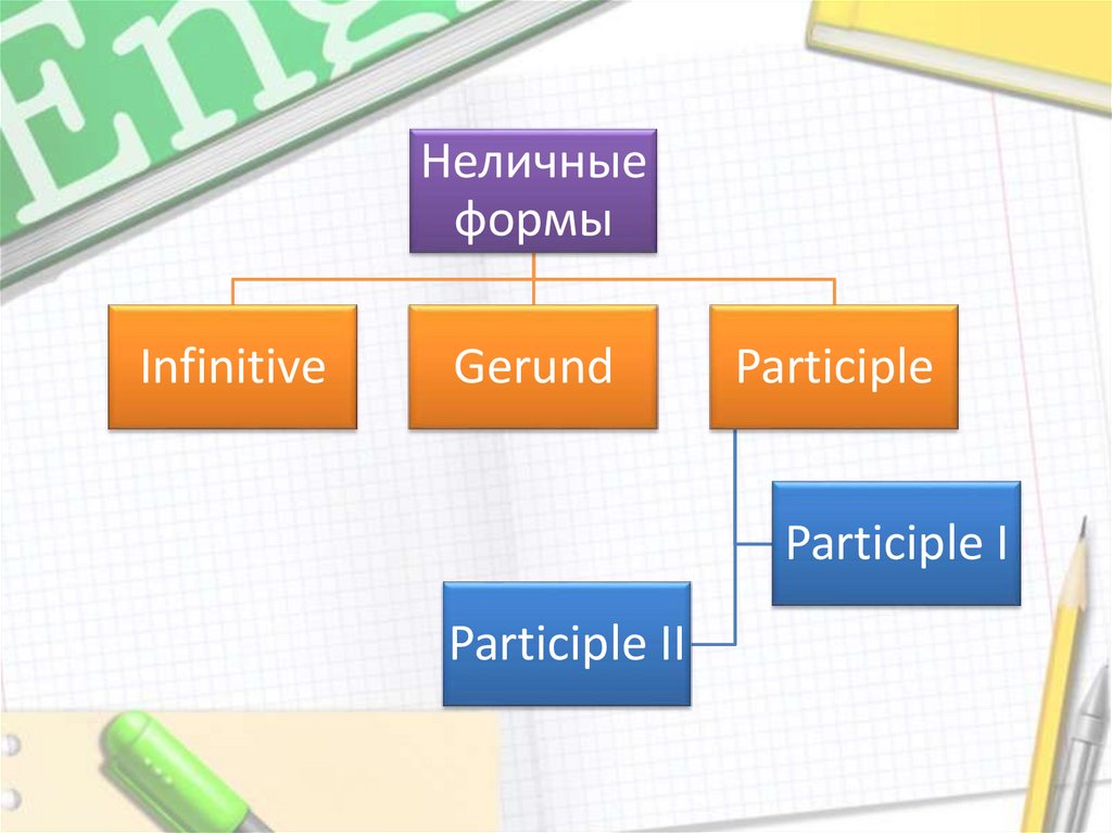 Инфинитив представляет собой неличную форму глагола,которая только называет действие.