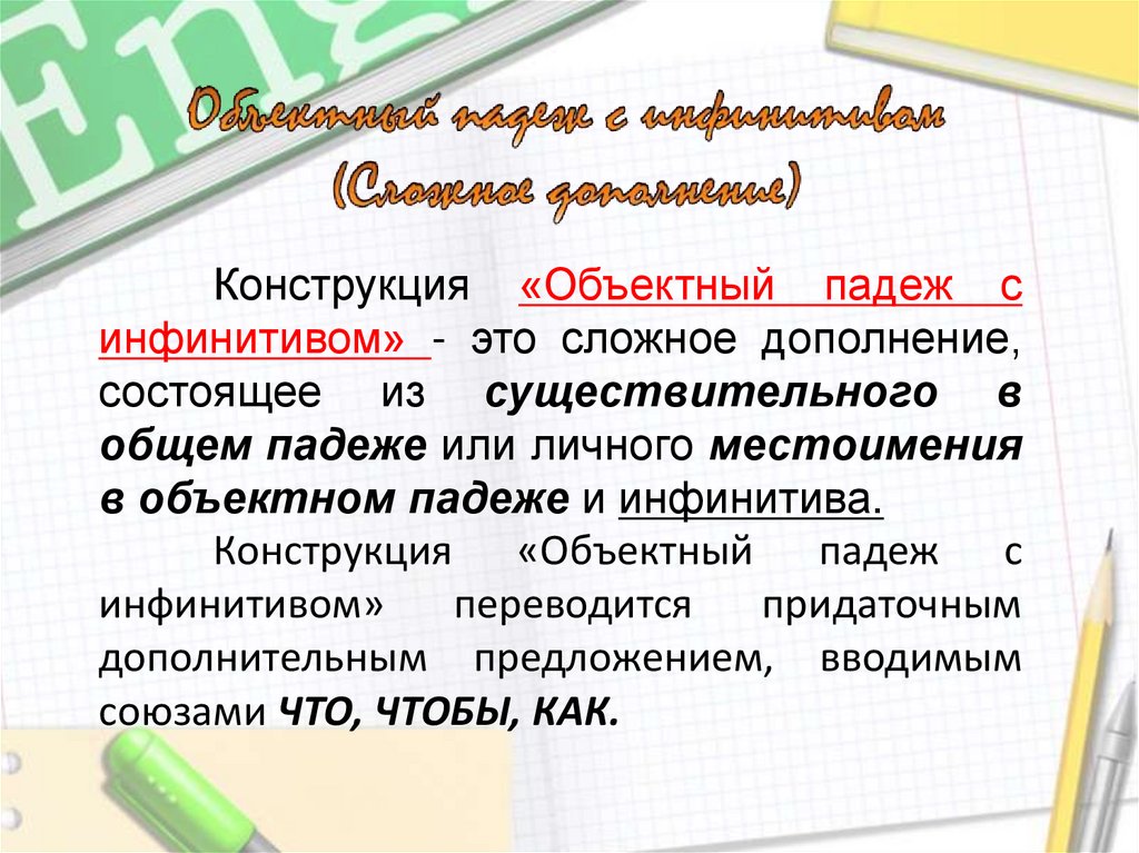 11. Объектный падеж с инфинитивом (Сложное дополнение)