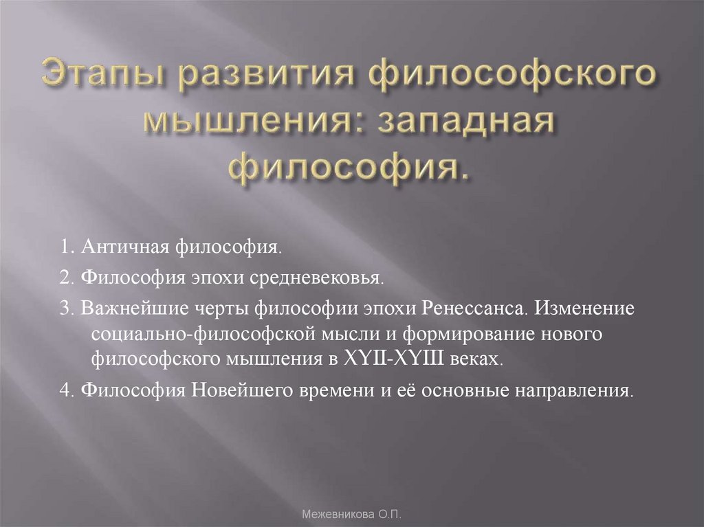 1. Этапы развития философского мышления: западная философия.