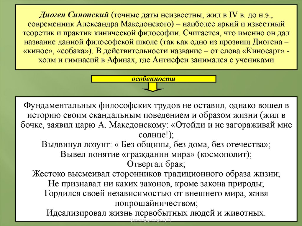 Киническая школа: Антисфен,