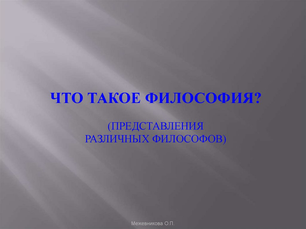 ЧТО ТАКОЕ ФИЛОСОФИЯ?(ПРЕДСТАВЛЕНИЯ