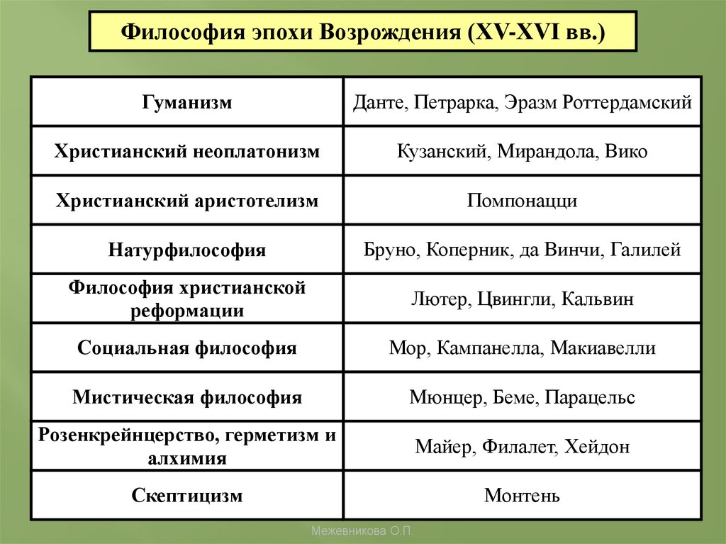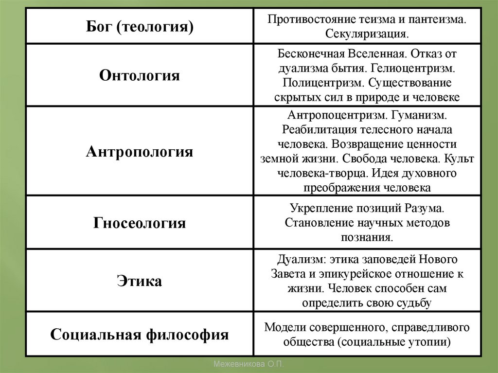 3. Важнейшие черты философии эпохи Ренессанса. Изменение