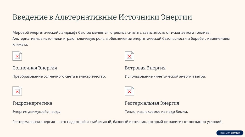 Введение в Альтернативные Источники ЭнергииМировой энергетический ландшафт быстро меняется, стремясь снизить зависимость от ископаемого топлива.