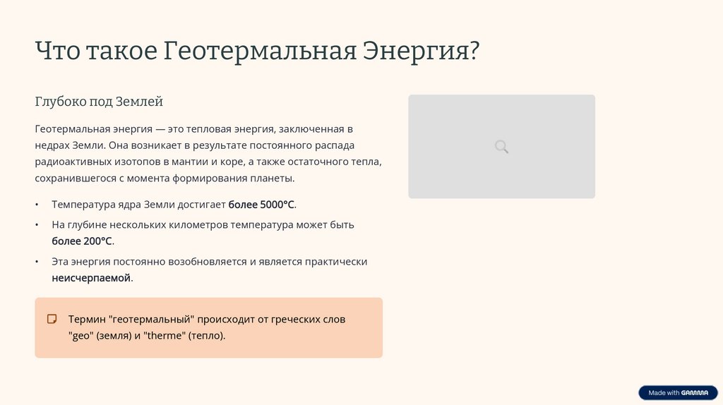 Термин "геотермальный" происходит от греческих слов