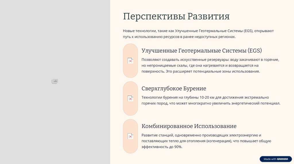 Перспективы РазвитияНовые технологии, такие как Улучшенные Геотермальные Системы (EGS), открывают